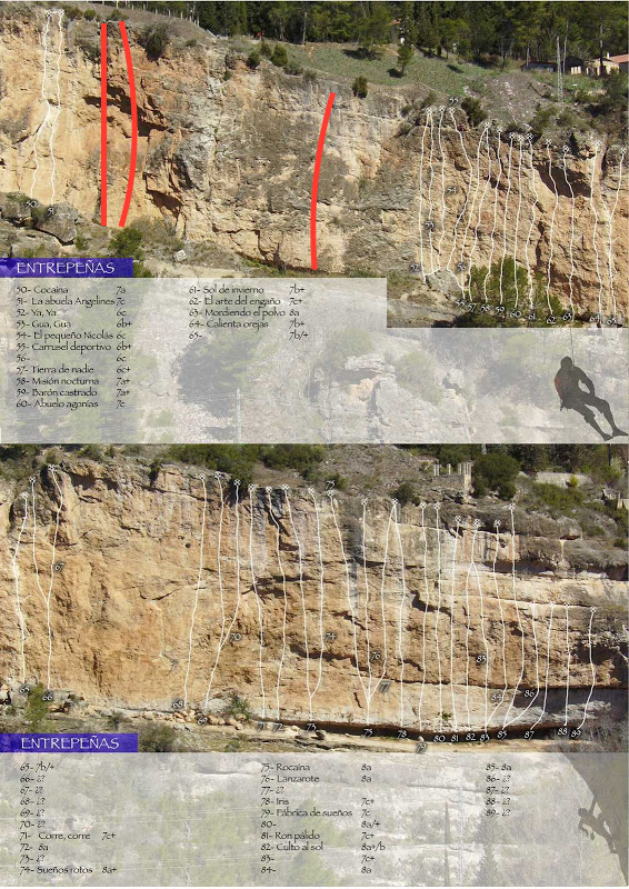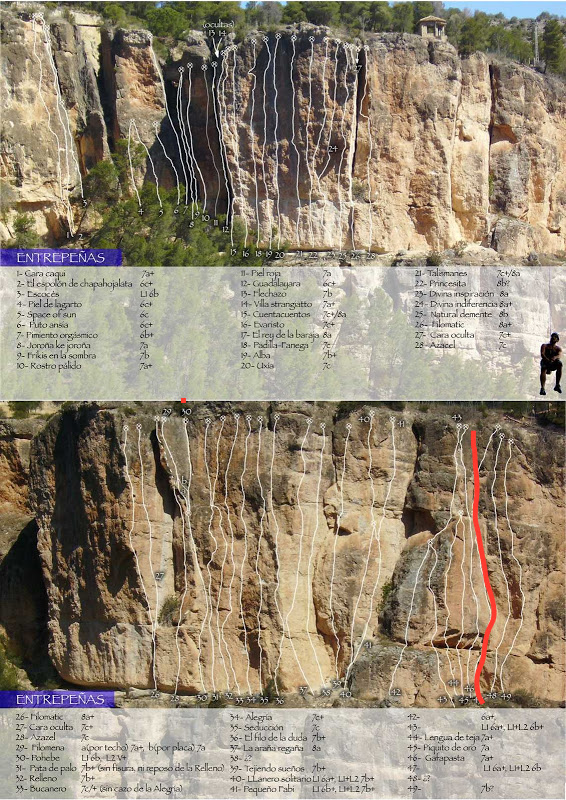 Las reseñas que tenía eran de cuando yo escalaba en estas paredes, de cuando era medio secretivo y aún se estaban equipando muchas de las vías. Anteriormente había tenido otras aún más antiguas, pero cuando empezaron a circular estas, fueron las «oficiales». Ahora ha salido publicadas en la revista Desnivel y es una escuela muy conocida y frecuentada, pero cuando yo venía estábamos los de siempre.