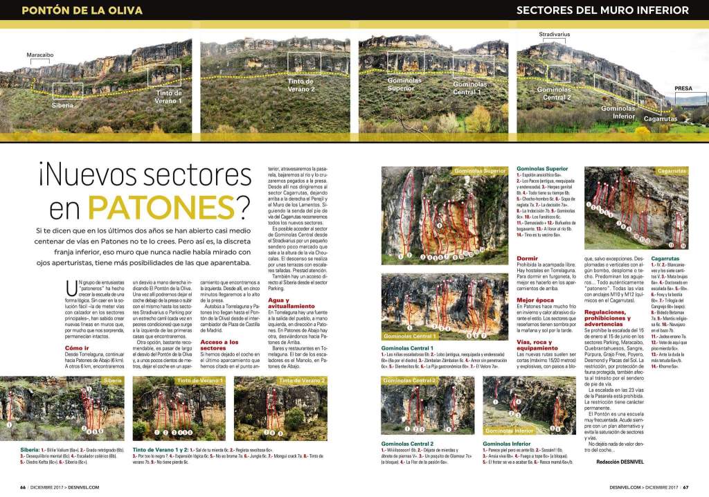 El resultado final, si es que se puede hablar de un fin concreto, es la aparición de diferentes sectores nuevos en los muros de Patones. Estos sectores albergan unas 40 vías de escalada de sorprendente calidad, algunas de ellas de considerable longitud, otras meramente anecdóticas. Una “expansión lógica” que da un aire fresco y necesario a esta conocida escuela de escalada, un respiro a los ya atestados muros superiores.