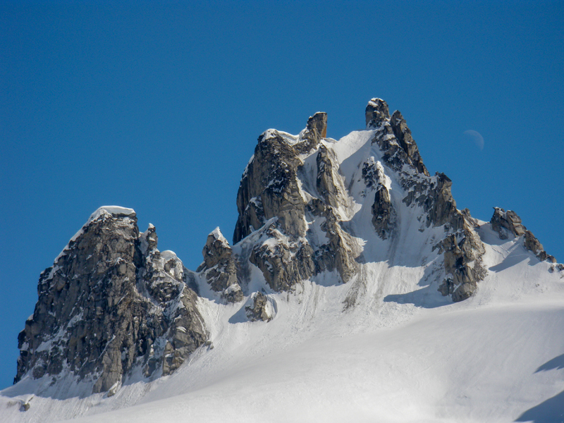 Pero ya habíamos visto una pequeña aguja, en donde sin exponernos demasiado a las avalanchas, podríamos escalar. Como todo en esta vida, al final, las cosas más pequeñas, más insignificantes, te acaban sorprendiendo. Mucho esfuerzo nos costó escalar esta aguja, pero al final llegamos a lo alto.