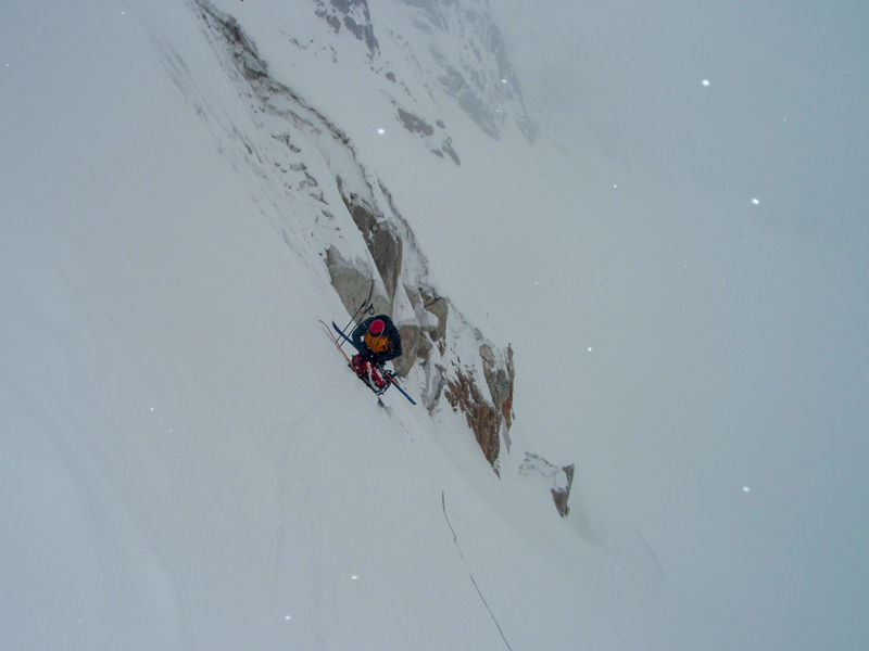 Al tercer día de estar atrapados en la tienda, y hartos ya de partidas de cartas a mil puntos, decidimos hacer un ataque suicida con los esquís a una montaña. Mala idea, lo del ataque suicida resultó casi un echo, y abandonamos donde la verticalidad de la nieve desafiaba a la gravedad.