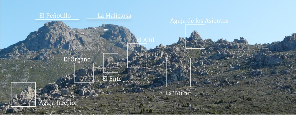 Quizás sea la zona más inexplorada, laberíntica y salvaje de todas las que se recogen en esta guía. Los Asientos es una ladera descarnada, que desciende desde la misma Maliciosa, formada por infinidad de bloques, agujas y paredes. Un lugar mágico en donde ya nuestros predecesores fueron atraídos por sus secretos allá por los años 60.