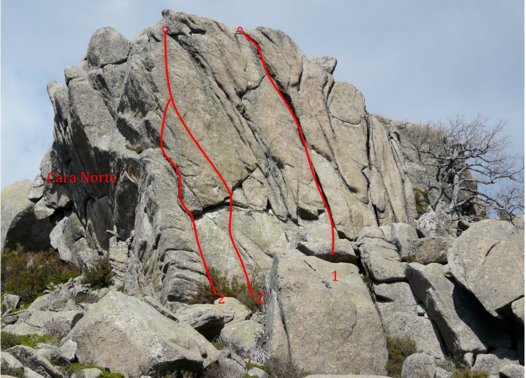 Abierta por P. Mejía, J. Eladio y T. Nuñez. Transcurre por una bonita fisura por la desplomada cara Norte, para salir por una placa sucia en artificial. Llevar friends y fisureros.