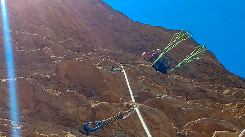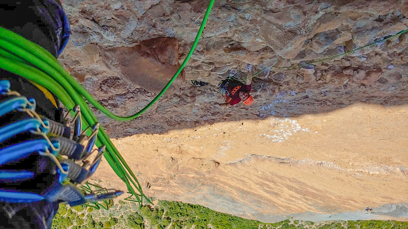 En 2017 colaboré en la reequipación de otra vía mítica de Riglos, la «Ley del Guerrero». Obra maestra de Fernando Cobo, en donde personalmente sentí una gran responsabilidad e intenté ser lo más meticuloso y respetuoso con dicha labor. Sustituyendo anclajes fijos por parabolts y puentes de roca por sirga de acero, «ojo por ojo«. Podéis encontrar más información en el blog de Fernando Cobo.
