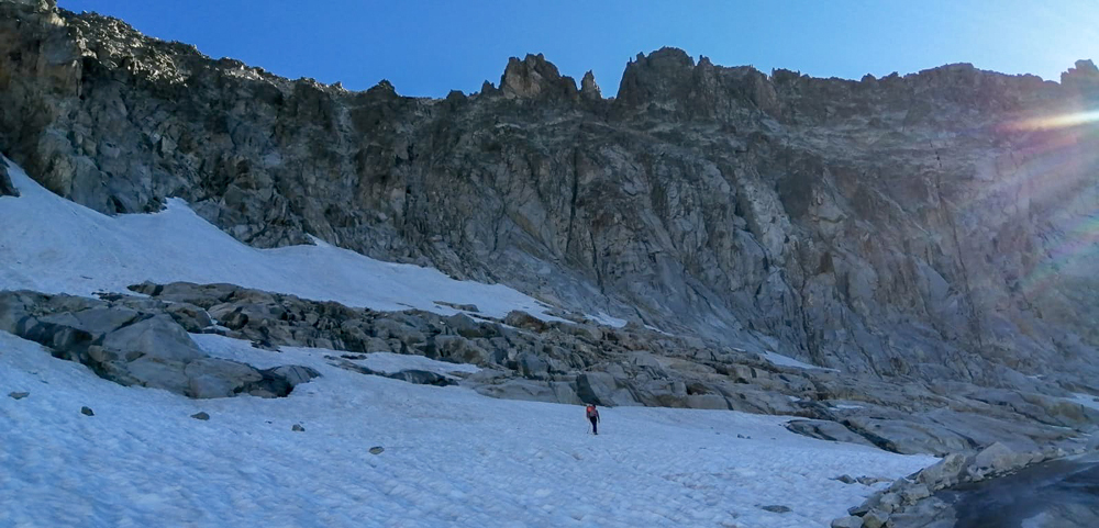 La aproximación es por el valle de Valliberna hasta el Ibón de Llosás, para continuar el ascenso dirección Brecha superior de la cresta de Llosás. Nosotros dormimos por esta zona, el lugar como imagináis es idílico. Tremenda soledad y paisajes sobrecogedores.