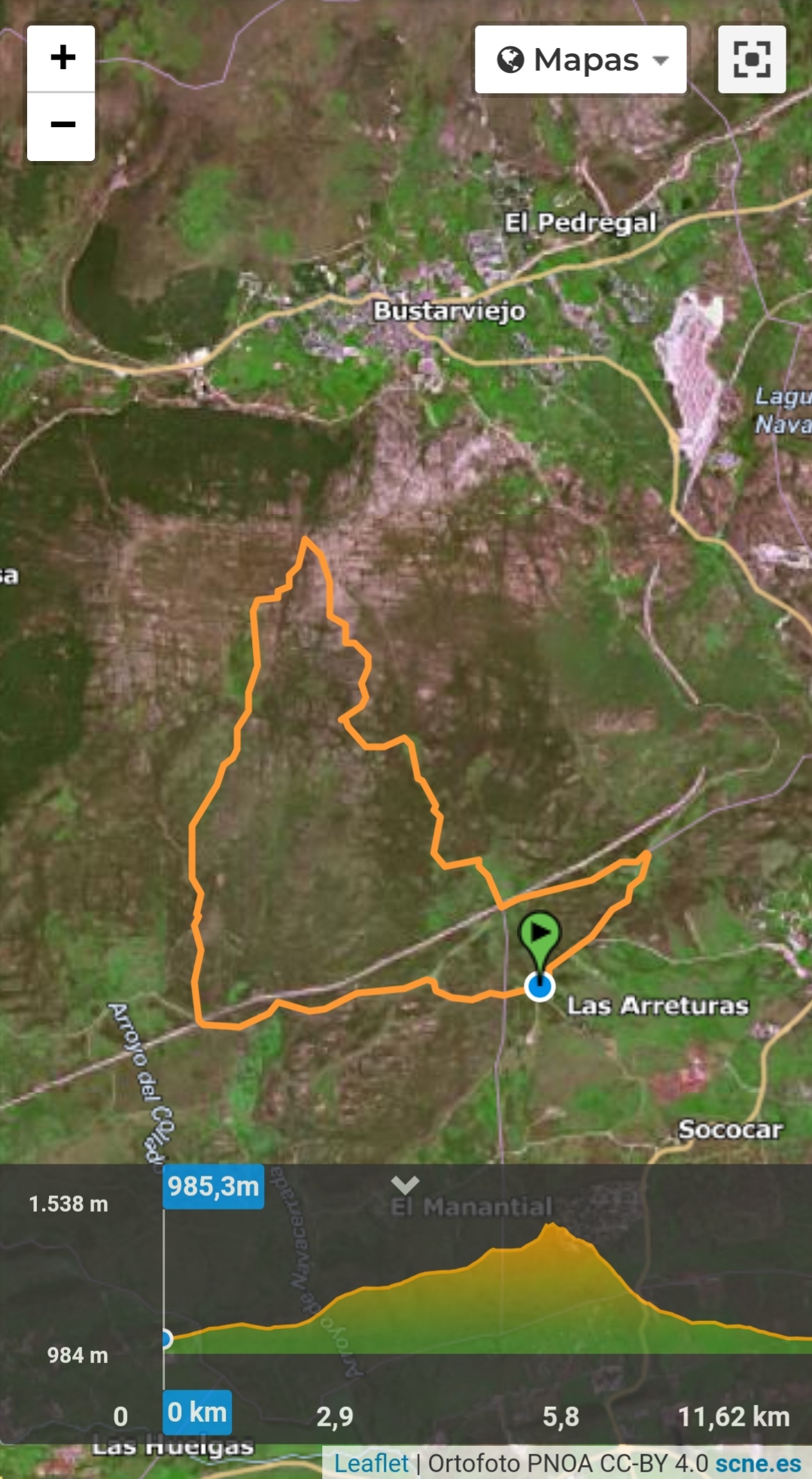 El track de ascenso se realiza por pistas y caminos perfectamente transitables. En alguna ocasión están algo descarnados o hay que prestar un poco más de atención para no perder algún hito en los metros finales. Pero no presentan mayor dificultad a la hora de progresar, salvo «que tiran pa’rriba«.