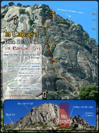 Con el tiempo he ido escalando todas las vías que se encuentran en el Pico de la Miel, e inmediaciones. Algunas muy repetidas, otras no tanto. Algunas con buenos recuerdos, otras con recuerdos, sin más. Pero no cabe duda que esta montaña ha formado parte de mi aprendizaje como escalador y ha sido el escenario de actividades de inmenso disfrute.