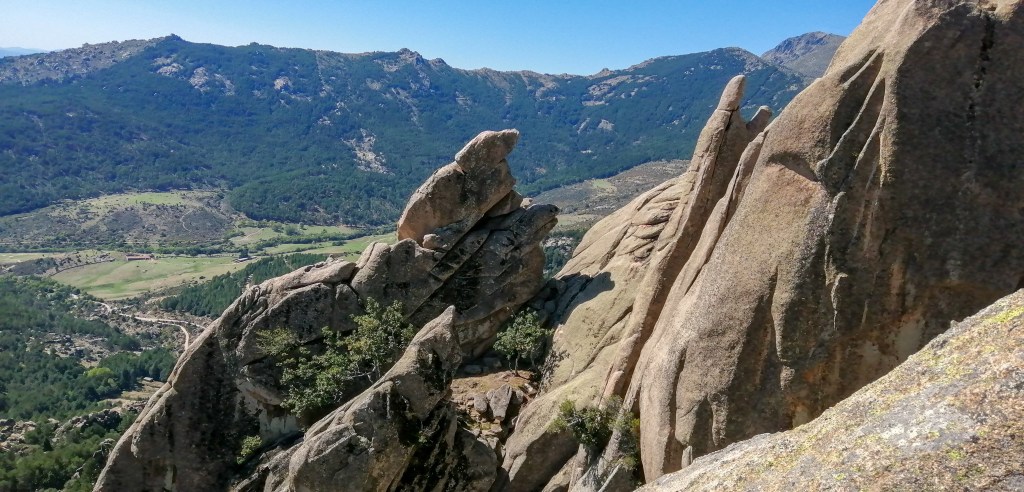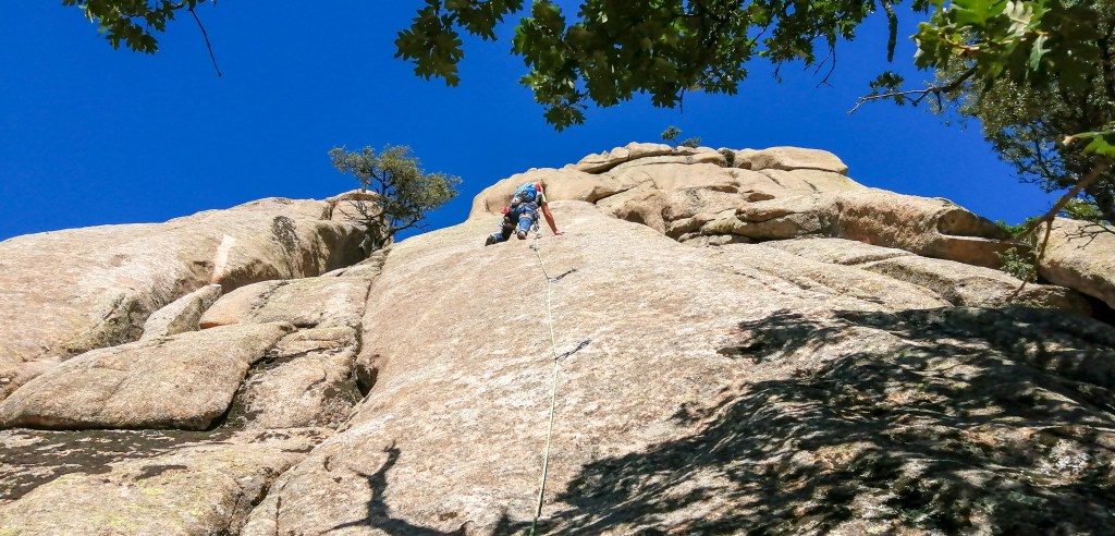 La zona superior del Collado Cabrón, en la Pedriza, es una zona poco frecuentada por escaladores. No es una zona olvidada, ni mucho menos, pero en contadas ocasiones encontraremos los riscos masificados.