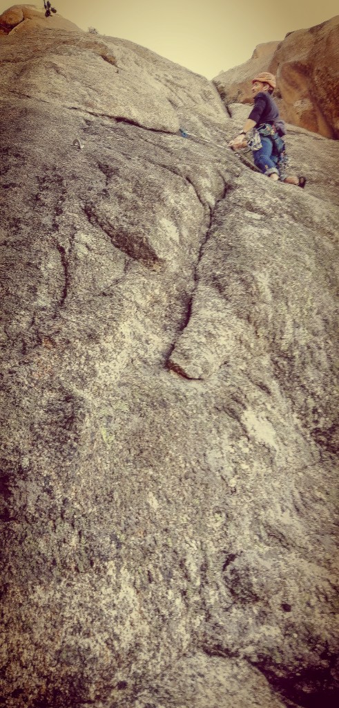 El primer largo tiene los últimos metros comunes con la «Directa» 6c/A0. Me pareció divertido y técnico.