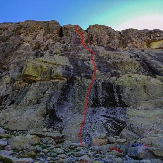 En el primer largo existe una variante más dura que sale por la izquierda (parabolt), la R1 está semiequipada con clavos. El siguiente largo transcurre por placas y un sistema de diedros ciegos hasta una pequeña repisa en la base del diedro (un parabolt), R2 equipada con clavos. El último largo es el mejor de la ruta, comienza escalando un bonito diedro (clavos y un bolt) para más tarde atacar un murito vertical blanquecino (posibilidad de montar reunión intermedia), R3 en instalación de parabolts o en clavo reforzable.