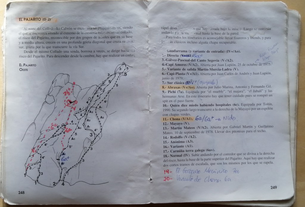 Mucho después, apareció la renovada y necesaria guía de escalada de la Pedriza, «La Biblia» la llaman. Muchísima información nueva, un buen trabajo, pero en algunas ocasiones incompleta.