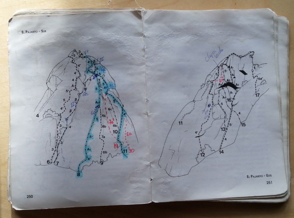 Yo, como muchos, aprendí con la más antigua. En donde la graduación de cuarto era sexto, donde los sextos eran casi séptimos y los séptimos… Donde en los croquis existía espacio en blanco entre vías, a veces mucho. Donde poco a poco ibas pintando a mano alzada las nuevas rutas y poniendo entre paréntesis, al lado de los A1, A2.., el grado en libre.