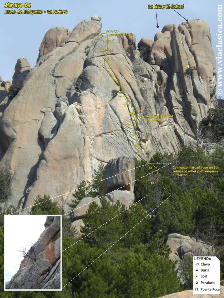 No pude ubicarme en la pared hasta que rescaté del polvo mi vieja (ahora casi que por la información, nueva) Guía de escalada de la Pedriza. En ella aparecía toda la información para completar «la Biblia» y así por fin poder salir de dudas.