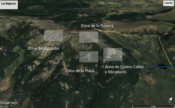 Desde el jardín de casa puedo ver la cara sur de la Najarra y el frondoso pinar que lo rodea. De entre las diferentes siluetas que ofrece la orografía de la montaña salta a la vista una agrupación de agujas graníticas que entrecortan el perfil de la montaña.