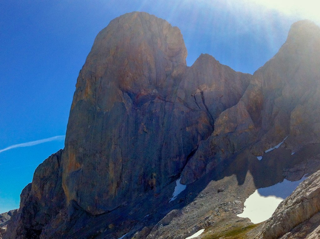 La cara Oeste del Picu Urriello es la mítica, la temida vertiente que desafía a cada vez más escaladores. De entre todas sus rutas, la Murciana 78 con sus 500 metros de escalada, convertida en una clásica de dificultad.
