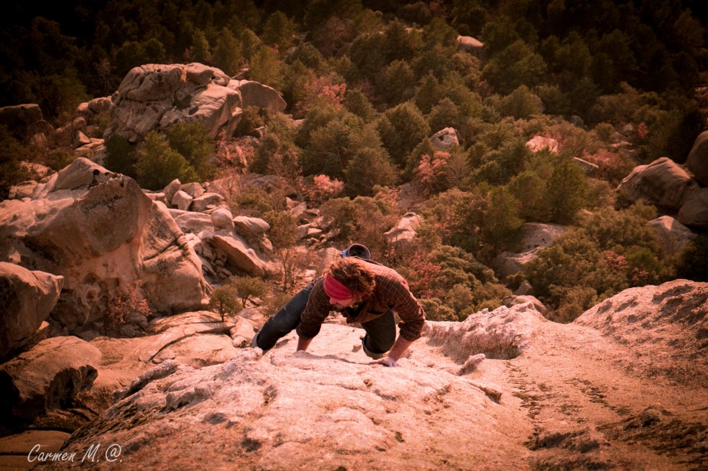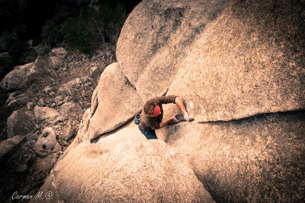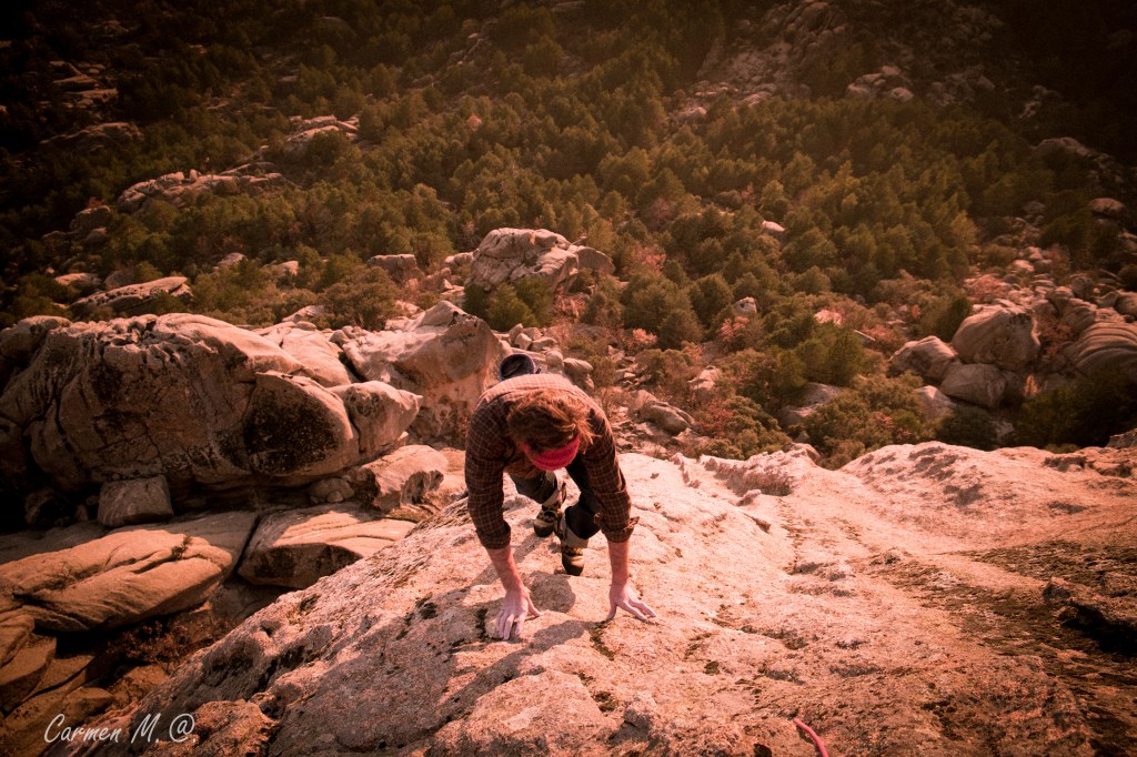 Hace algún tiempo Oli y yo hicimos una sesión de fotos mientras ascendía en solo integral la conocida Sur del Pájaro, aquí en la Pedriza. Algunas de ellas vieron la luz en alguna conocida revista, otras no.
