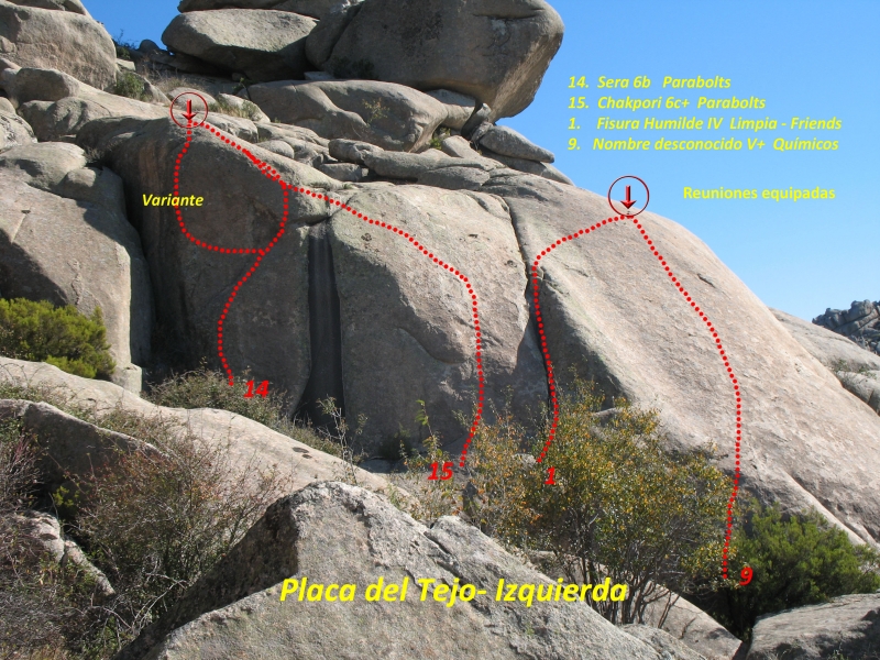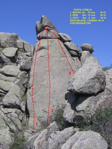 Bloques situados entre la Peña del Tejo y la Punta Conejo. El acceso se realiza desde la zona de boulder buscando el mejor camino.