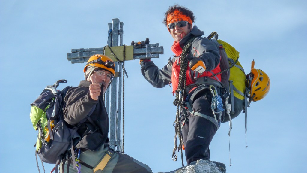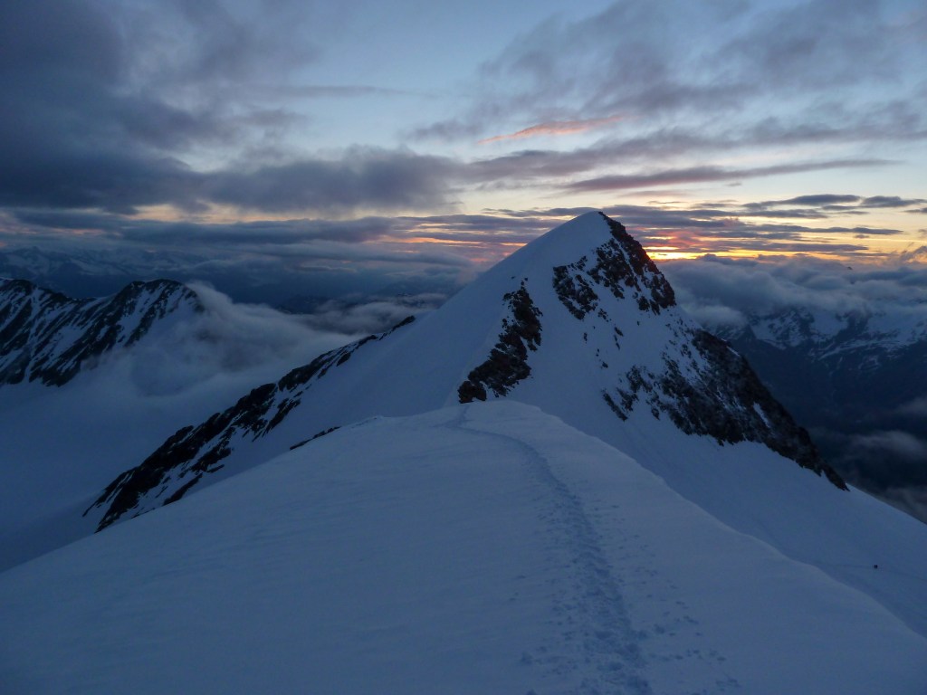 Para no dejar la jornada en blanco y viendo que aún era pronto, decidimos ascender a la cumbre que originariamente era secundaria para nosotros, el Nadelhorn. La meteo no parecía tan «horrenda» y es que por la noche todos los gatos son pardos…