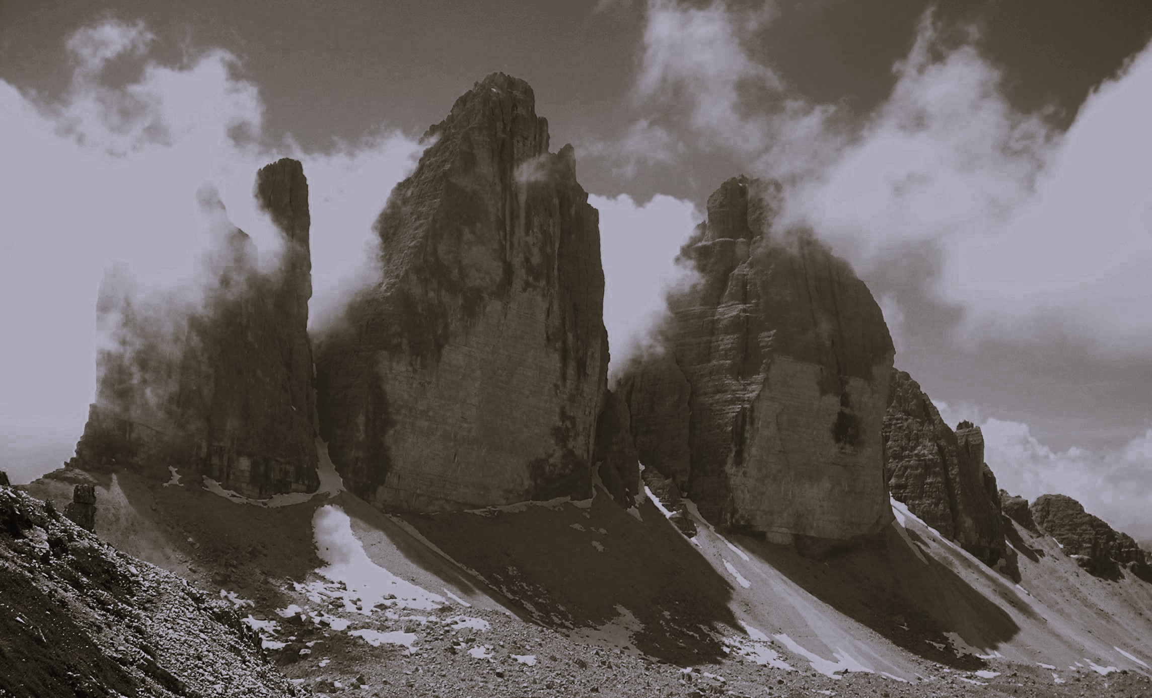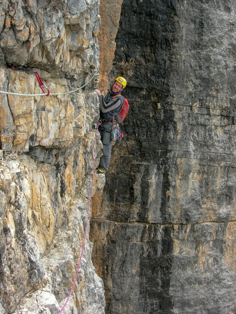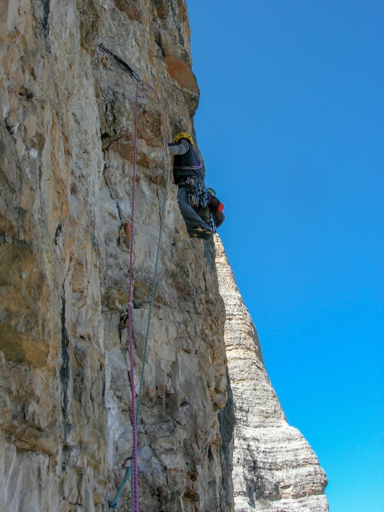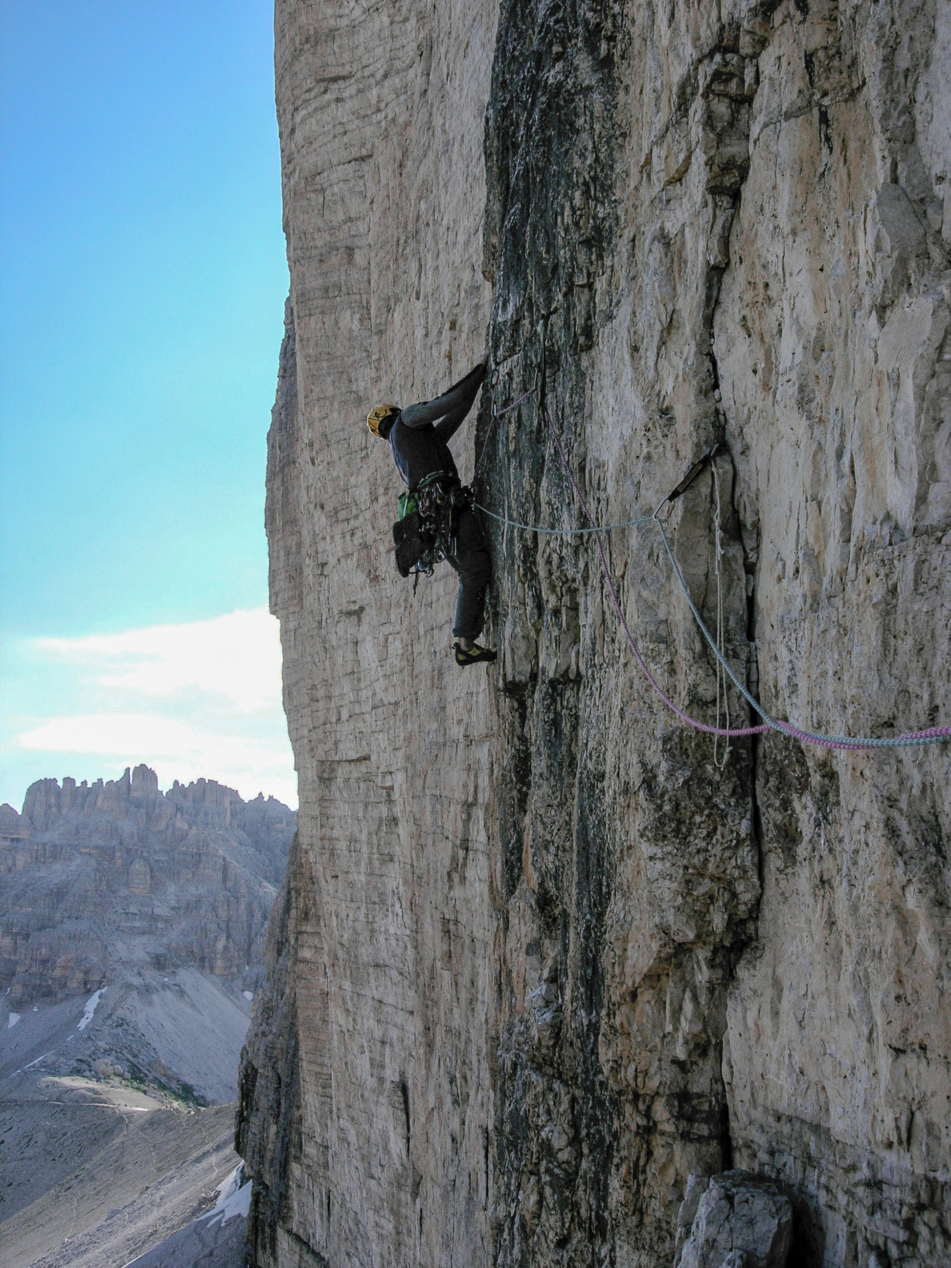 Una de las «Seis caras norte» se encuentra en Dolomitas, en la famosa y temida cara norte de la Cima Grande di Lavaredo. Un impresionante muro vertical que acongoja desde la distancia, pero que al acercarte, asusta.