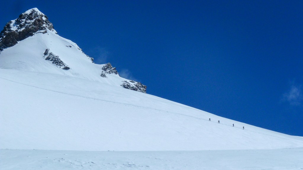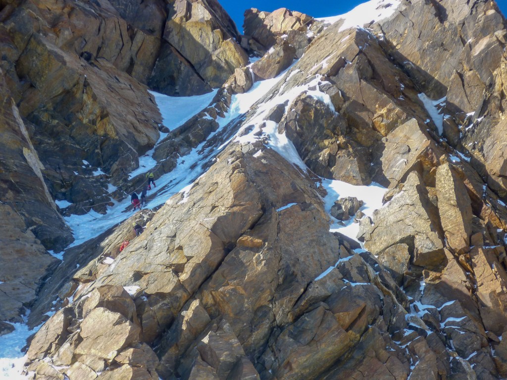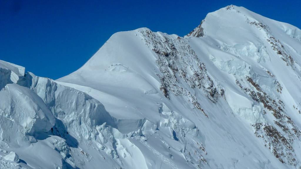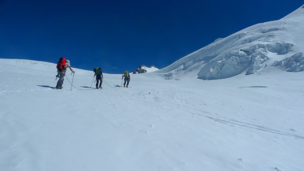 Durante todo el ascenso podemos optar por ir ascendiendo las diferentes cotas, o simplificar e ir por el fondo del glaciar hasta el final de la etapa. El ascenso de todos estos cuatromiles no conlleva ninguna complicación (alguna inclinación moderada), salvo las implícitas de estas actividades que todos conocemos.