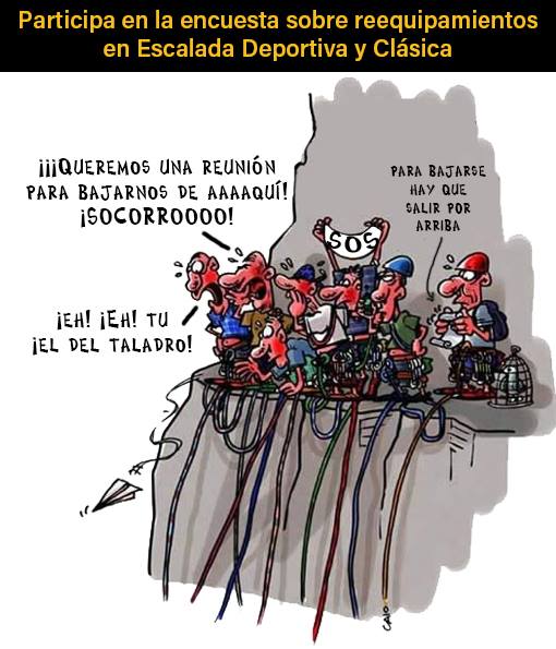 Si todavía no has participado en la encuesta sobre reequipamientos en escalada deportiva y clásica, accede a través del siguiente enlace https://bit.ly/3auGlR0
