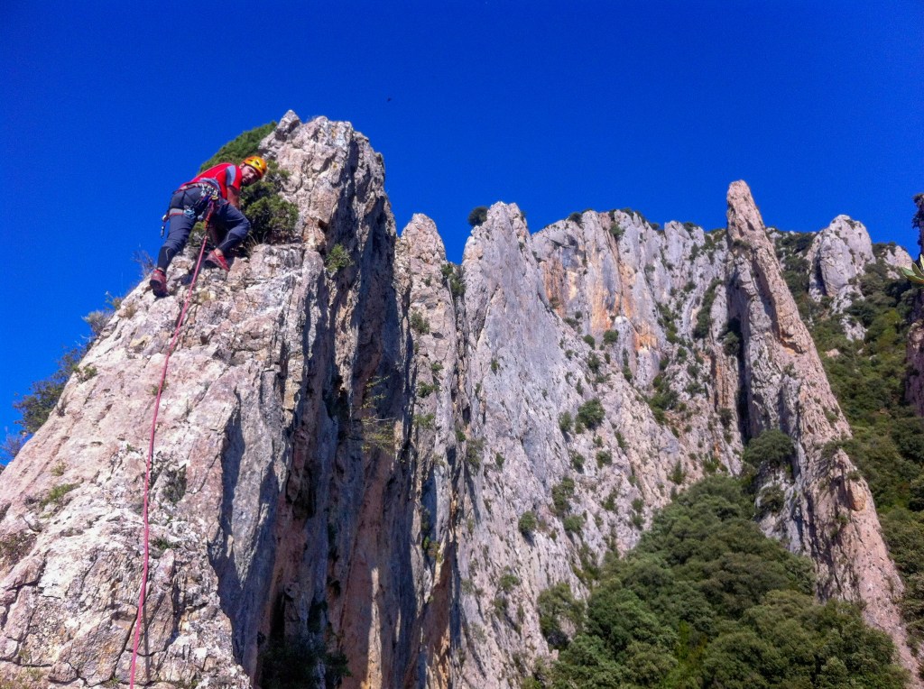 Conocidísima escalada, bien visible desde la carretera en nuestros trayectos hacia el Pirineo. Es por ello creo, que quizás sea la más conocida de todas y la más repetida. Estas dos propuestas se pueden realizar perfectamente en el mismo día, o combinarlas con cualquiera de las vías de escalada de largos existentes en las paredes más verticales.