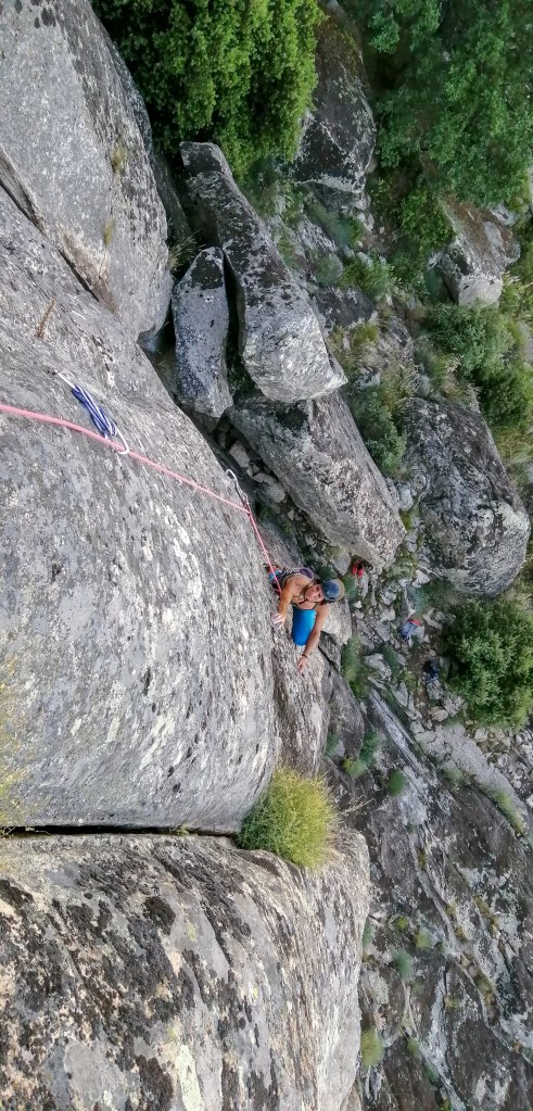 Fantástico primer largo, imprescindible para el que se considere escalador de la Cabrera, placa técnica de aguantar. Encontramos la ruta prácticamente equipada, pero es aconsejable llevar seguros flotantes. La ruta está bastante olvidada, encontrando algunos largos sucios (sobretodo el último), pero merece la pena escalarla.