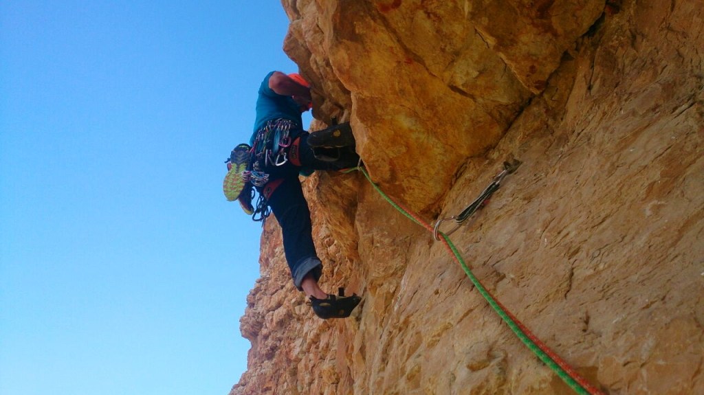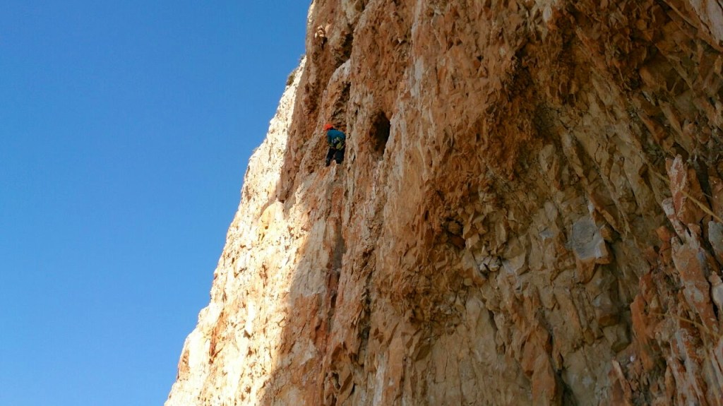 Pensar en escalar en estos momentos en este lugar se me antoja escalofriante, no por su fama de roca descompuesta, como se podría imaginar. Si no por el tórrido paisaje que le rodea.