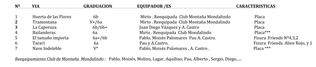 Muchas gracias por el esfuerzo de recopilación. En esta zona hemos escladodo bastantes veces y tu información es muy de agradecer.