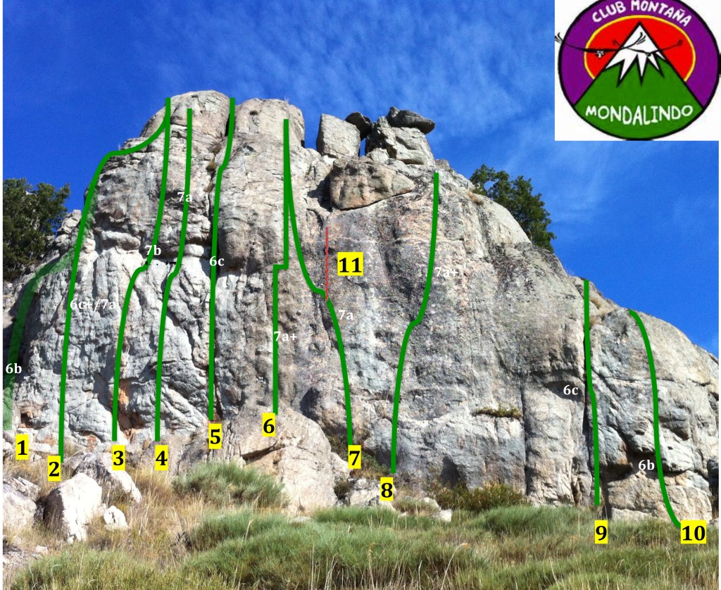 Aislada zona de escalada ubicada en los roquedos que salpican la falda del cordal que une el Pico Mondalindo con Peñas Negras. Existen diferentes líneas de escalada que se ven algo desmerecidas por el abandono y la suciedad que eso conlleva.