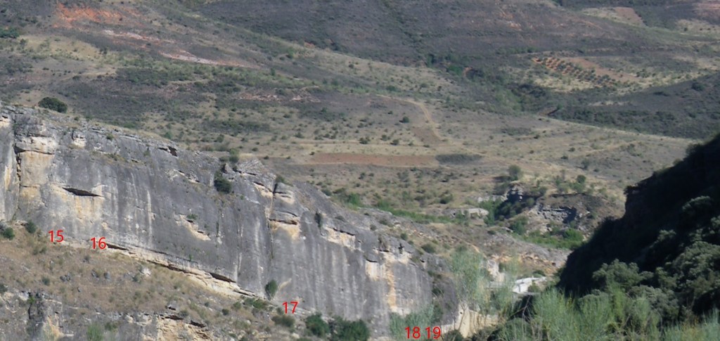 17. Hijo del Maya 6b. Larga ruta que comienza por una placa sencilla para salir por un desplome acusado de buen canto. Gestionar bien el roce de la cuerda.