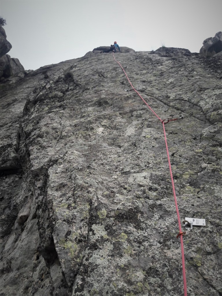 Sin duda alguna es la mejor vía de escalada de este risco (y posiblemente de todas las agujas), comienza por una larga y mantenida placa de movimientos finos para salir por un pequeño muro vertical.