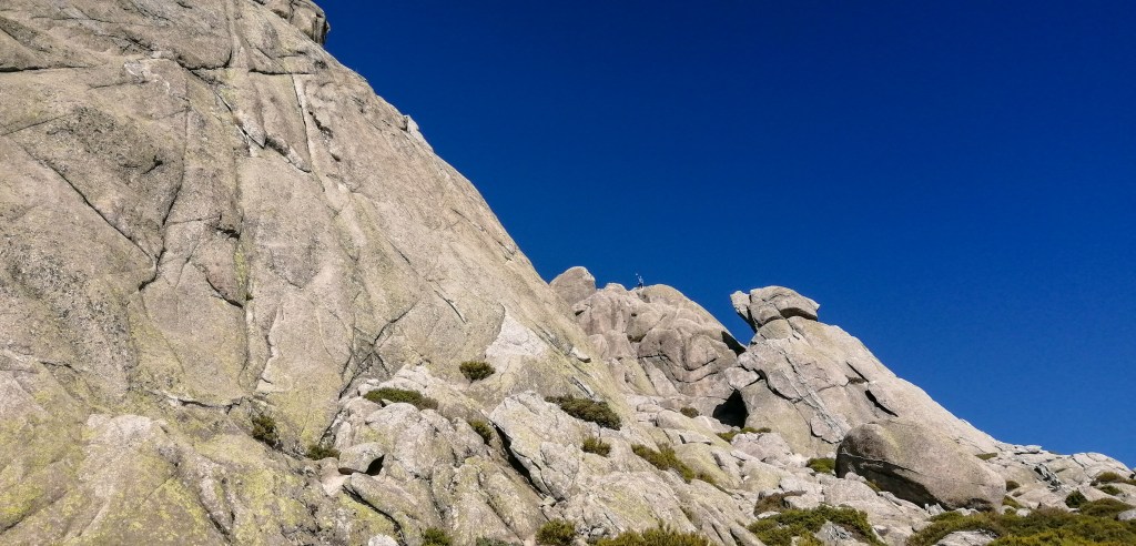 Más o menos llegamos rápidos a lo que creemos ser la cuarta Torre, en 1h 50′ llegamos caminando/corriendo hasta la cumbre de la misma. Pronto nos percatamos de que nuestro primer pensamiento era equívoco, éste estaba infundado por (creemos) una errata de la «Guía de escaladas: La Pedriza Posterior. Ed. Desnivel» en la que identifica la tercera Torre como la cuarta.