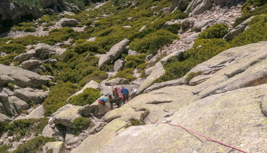 Tras no pocas dificultades comenzamos la escalada de este característico diedro, uno de los mejores largos escalados el día de hoy.