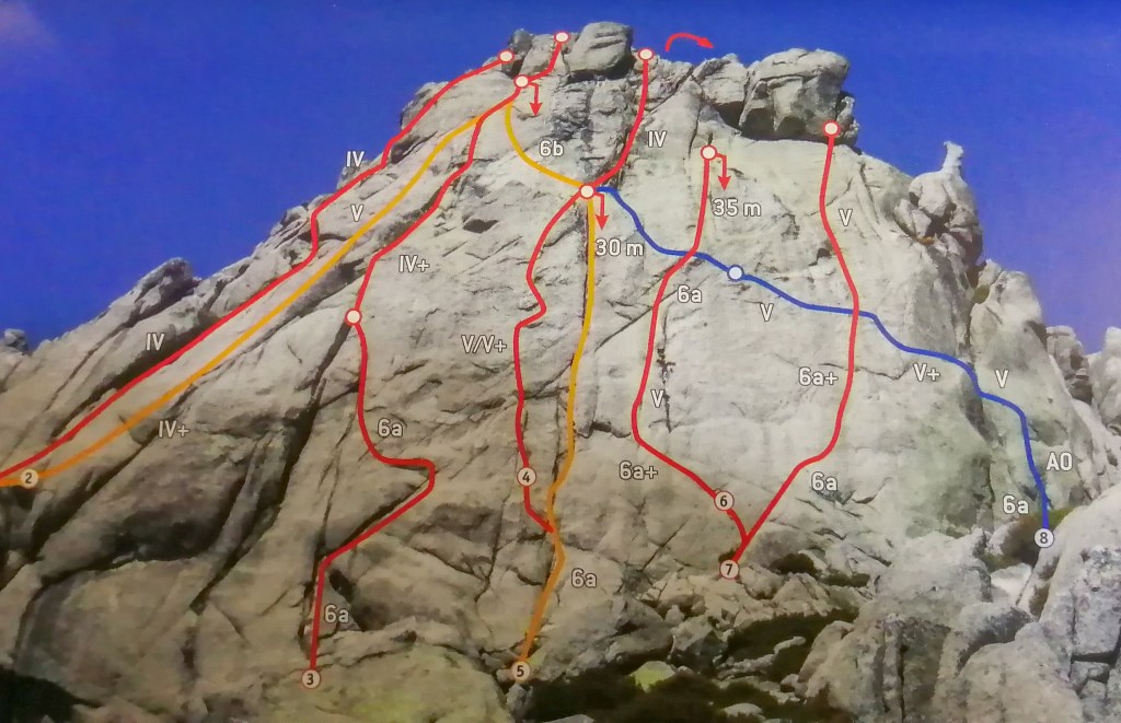 De todas ellas nosotros escalamos la Alfredo-Sergio 60 m 6a, una interesante escalada donde encontramos el sinuoso primer largo semiequipado con clavos (algo expuesto) y un segundo largo bonito pero algo sucio.