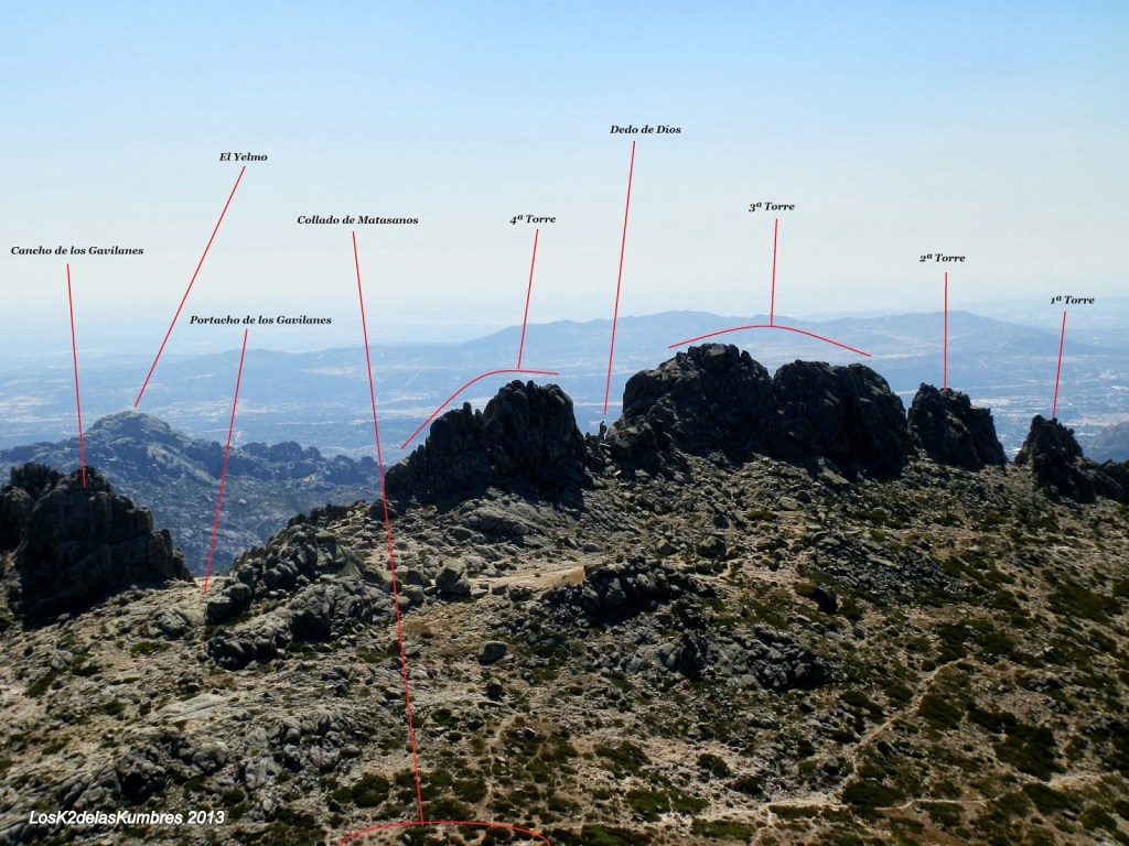 Con esta fotografía creo que quedará claro la ubicación de las mismas, es la cara norte (según venimos del camino de aproximación de la actividad). Como referencia característica tomaremos la curiosa formación granítica adosada a la tercera Torre denominada el Dedo de Dios.