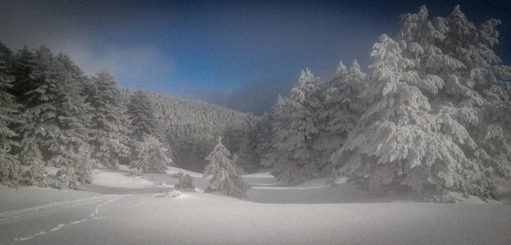 Una vez más nos encontramos en la reconfortable soledad y amparados por el abrigo del maravilloso bosque que envuelve la pista de fondo por la que transitamos. Me deslizo con mis esquís de Backcountry, si el terreno del otro día era propicio para ello, el de hoy te incita a realizar miles de kilómetros.