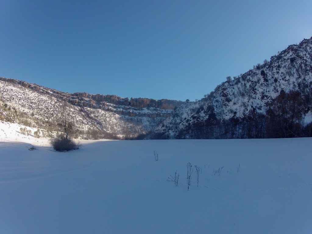En un día de esos de transición, en los que el día anterior te has pegado una buena paliza y quieres descansar para aprovechar más adelante, fuimos a dar un paseo por Patones. Nos llamaba mucho la atención poder ver las tan conocidas paredes rocosas vestidas de blanco y yo tenía curiosidad por descender con mi Packraft el tramo del río Lozoya que transcurre desde la Presa de la Parra al Pontón de Oliva (curiosamente uno de los pocos lugares permitidos a la navegación por la Confederación del Tajo).