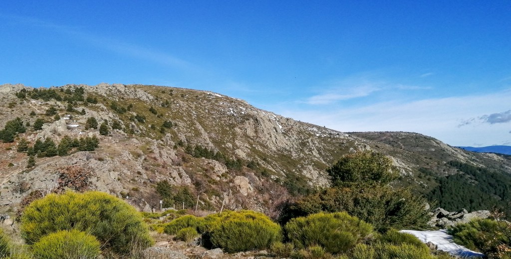 Nos dirigíamos hacia el Perdiguera, desde hace ya bastante tiempo llevaba observando unos riscos en sus laderas que podrían ofrecer alguna línea interesante, de hecho no sé aún si alguno de vosotros se ha acercado en algún momento ha escalar por la zona. Los riscos en sí se encuentran situados a la izquierda del Cancho Prieto y son muy llamativos desde la carretera que nos conduce al Puerto de Canencia.