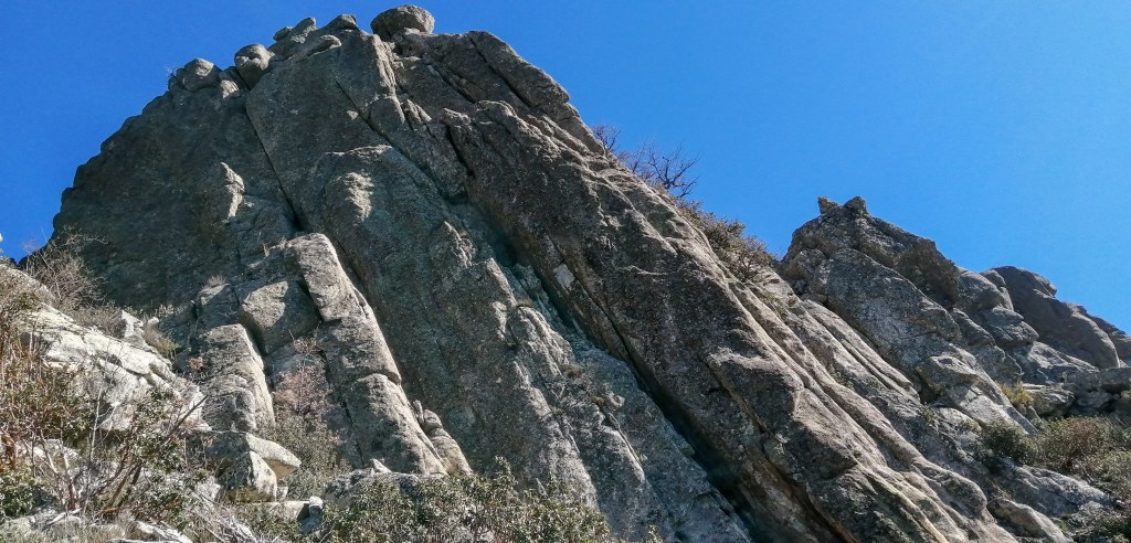 Elegimos la zona de Valdemanco, el paisaje y el lugar es simplemente espectacular, más aún en los días despejados y soleados, en donde a medida que asciendes por las laderas se muestra ante ti un maravilloso y amplio relieve. Por comodidad, elegimos escalar una ruta en la Aguja Astarot, uno de los primeros pilares rocosos que encontramos en la hoja de sierra que forman las Agujas de Valdemanco, concretamente la vía Josemi-Antonio 60 m V+.