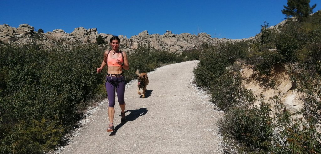 Cuando disponemos de poco tiempo Oli y yo y tenemos ganas de realizar aquellas actividades que nos aportan tanto paz como diversión, intentamos combinarlas para poder disfrutar de ellas; en esta ocasión, una buena manera de hacerlo fue realizando la aproximación corriendo para más tarde escalar la pared elegida.