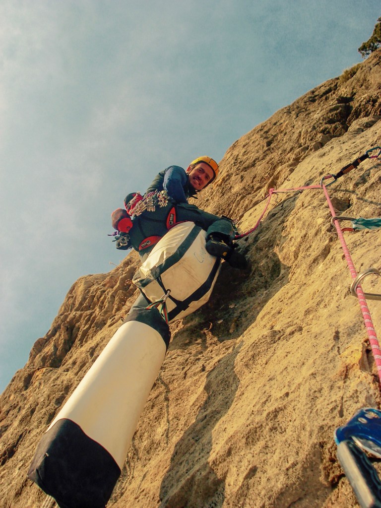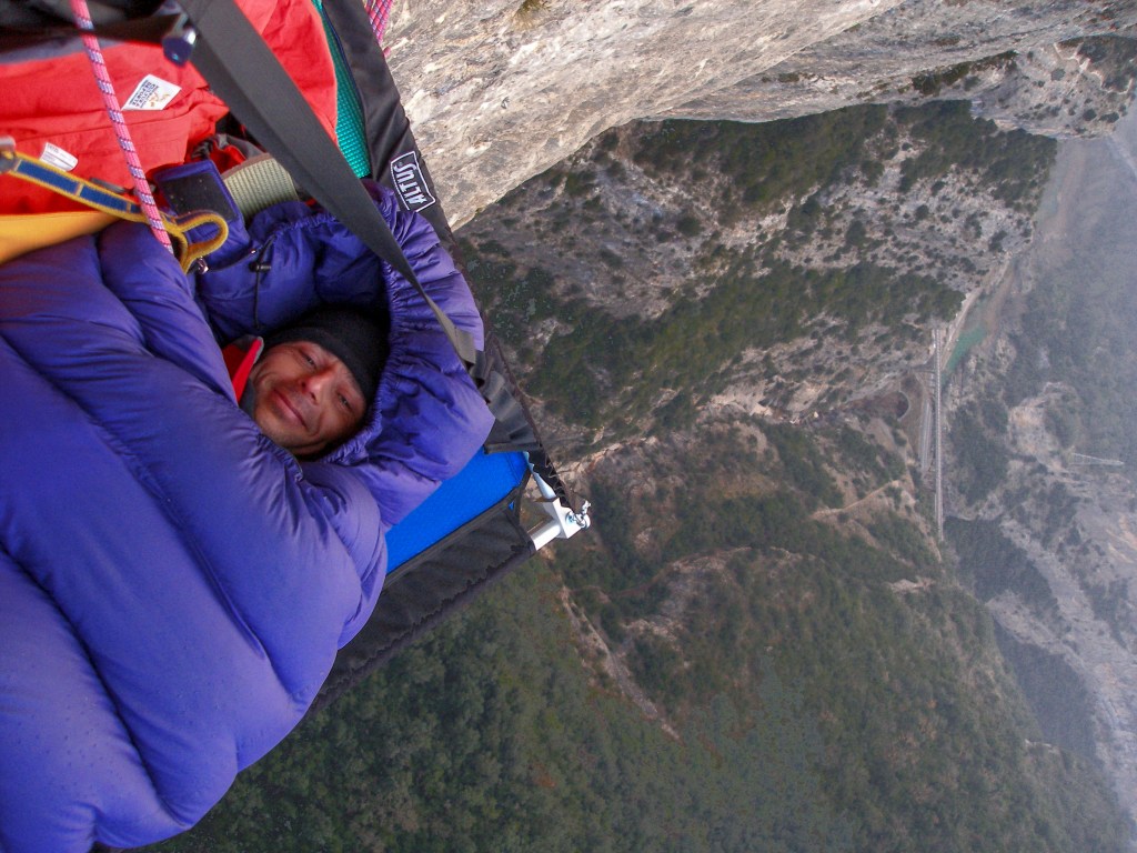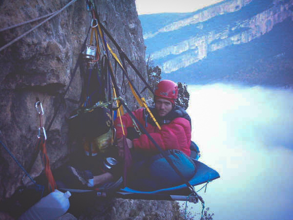 Durante muchos años era costumbre que escalara alguna ruta «compleja» en Roca Regina en invierno, me encanta este pequeño rincón y el aura que te envuelve cuando todo se cubre de fría niebla (algo bastante normal en periodos de anticiclón). Como he dicho anteriormente, escalar en invierno en esta pared no incrementa considerablemente la dificultad del recorrido (alguna tiritona de más), tan solo tenemos una disminución considerable de horas de luz. Algo (aún siendo una cordada rápida) que nos obligará a dormir en pared en las rutas más laboriosas la gran mayoría de las veces, una excusa perfecta para desempolvar el petate y la hamaca.