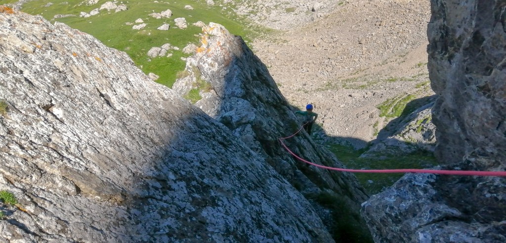 Estas cosas me crispan un poco y no las entiendo, sobre todo porque cuando llegaron, yo ya estaba empezando el segundo largo y H «corría que se las pelaba» por este terreno tumbado. No los volvimos a ver en todo el día, algo que agradecimos ambos.