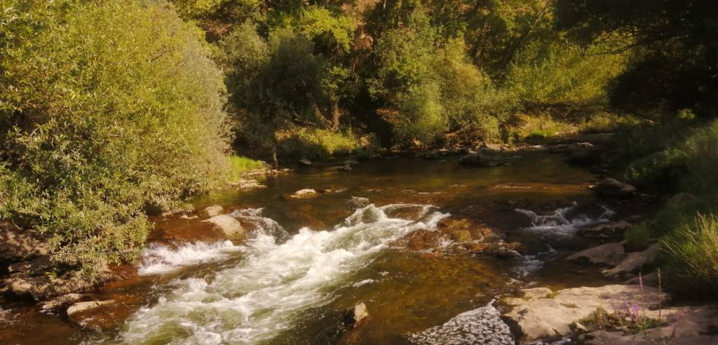 Así que el tramo de hoy sigue la tónica del paisaje encañonado de estos días, en algunos lugares el cauce tan solo tiene unos pocos metros de ancho, otros, sin embargo, se abre en pronunciadas laderas. Es en estas laderas escarpadas es en donde observamos peculiares y sorprendentes terrazas que durante cientos de años han servido para cultivar olivos, almendros e incluso naranjos.