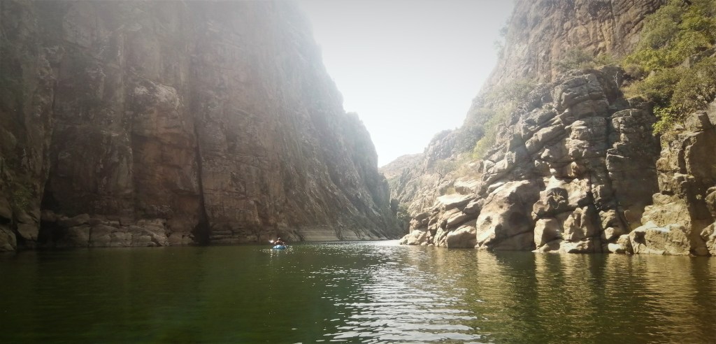 Pese a todo partimos. En los primeros 10 kilómetros el río se muestra de nuevo muy salvaje, con grandes e inaccesibles cañones rocosos, una tónica a la que nos estamos mal acostumbrando.