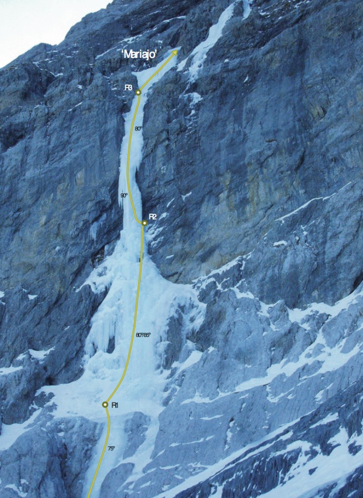 Junto a la Mariajo es la cascada que mejores condiciones suele presentar. Bonita y asequible escalada. Para cordadas rápidas puede ser una buena forma de completar el día. Descenso en abalakovs. 2 horas.