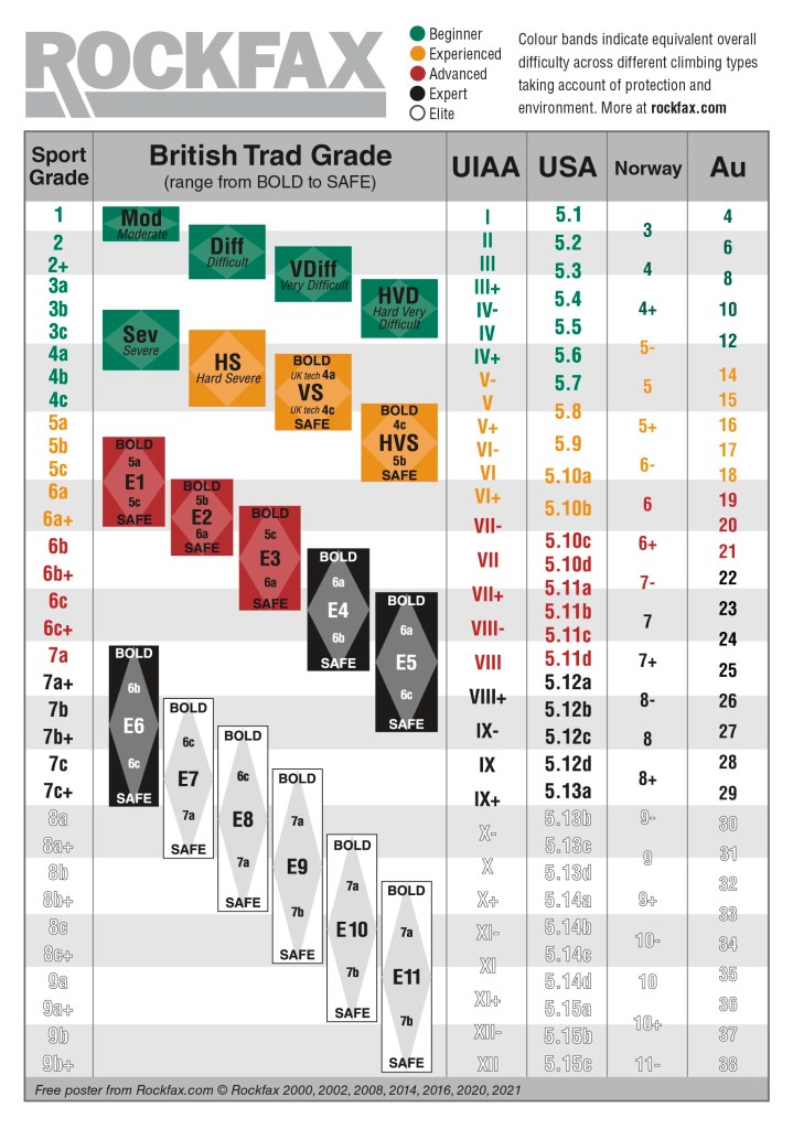 La graduación Británica de dificultad es un sistema de graduación de escalada tradicional que tiene dos partes: