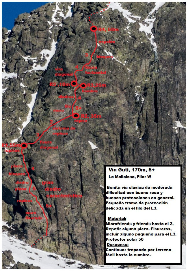 La aproximación la realizamos desde el puerto de Navacerrada, la distancia es más larga pero es mejor camino y menos desnivel. A esto, se suma que madrugando, se podría ir en sombra casi todo el camino. Unas dos horas de aproximación hasta pie de vía.