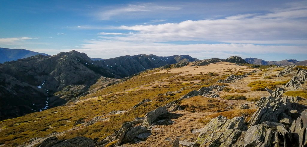 El comienzo de la ruta no tiene pérdida, y transcurre por un marcado camino más o menos paralelo a la carretera, para más tarde afrontar los continuos desniveles hasta el Collado de los Lobos, lugar en donde encaramos la fuerte pendiente para subir a nuestra primera cumbre, la Peña la Silla. Las vistas desde este lugar al macizo del Pico Lobo son maravillosas.