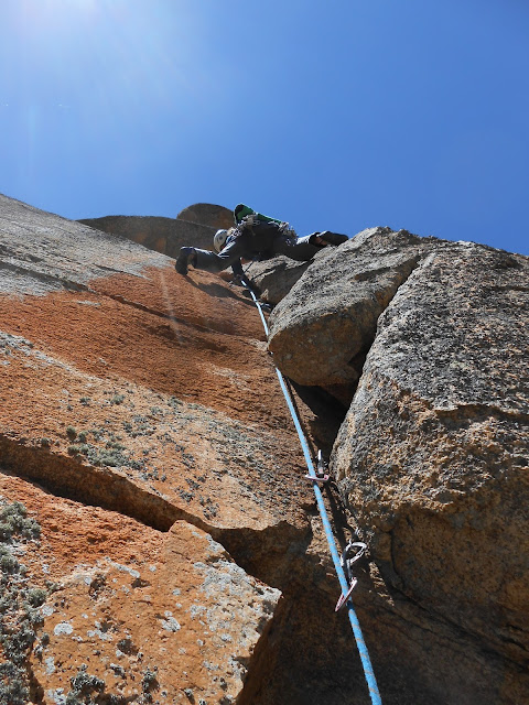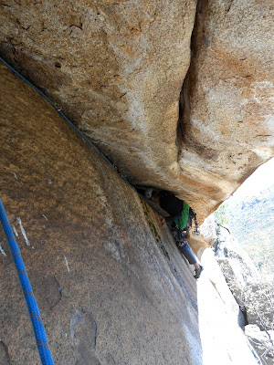 Corta, pero buena combinación de vía de fisuras, que nos hará creernos estar (por un breve espacio de tiempo), en Yosemite.