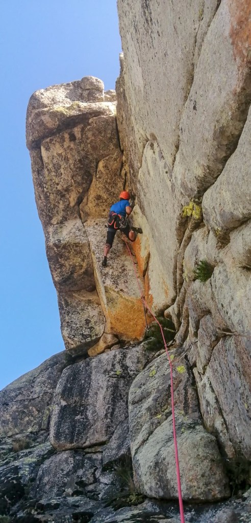 Más te vale ir sobrado en esta vía de escalada, aquí sí que tienes que dominar el grado, ruta psicológica de pasos obligados. Excelente.